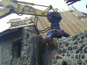 Pour cela nous disposons de quatre types de machines ; pelle de 8T, 12T, 14T, 28T équipées d’une pince hydraulique de démolition, nous permettant de trier le bois, la pierre, les matériaux en général.