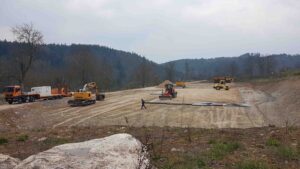 Disposant de deux carrières, nous pouvons fournir les matériaux nécessaires à l’empierrement des plates-formes. Nous pouvons également, suivant la nature du sol, recycler les matériaux en place à l’aide d’un concasseur mobile.